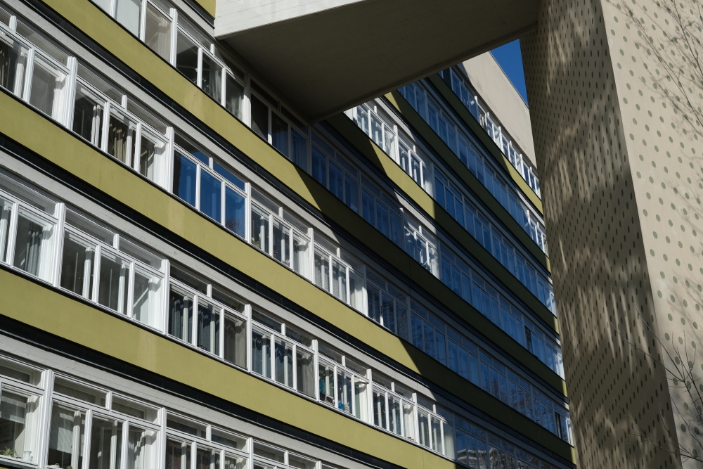 Ou sur les couleurs car c’est une des caractéristiques de ces bâtiments des années 50 à Hansaviertel.