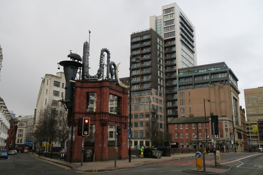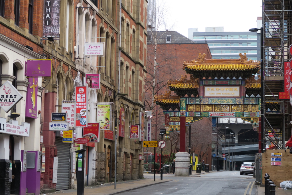 De nombreux quartiers du centre ville de Manchester sont composés de ces petits immeubles bas donnant sur des rues étroites. Une ambiance des films de Ken Loach, surtout par dimanche matin grisâtre sous un petit crachin.