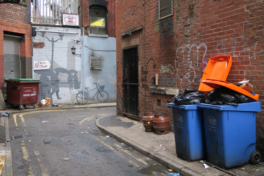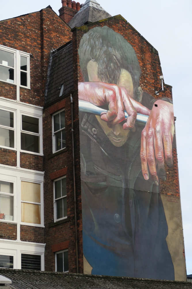 Commençons par une promenade street art à Manchester. Le Northern Quarter est un quartier où on trouve de très nombreuses œuvres. Un quartier ouvrier à l’origine, avec des bâtiments bas faits de brique.