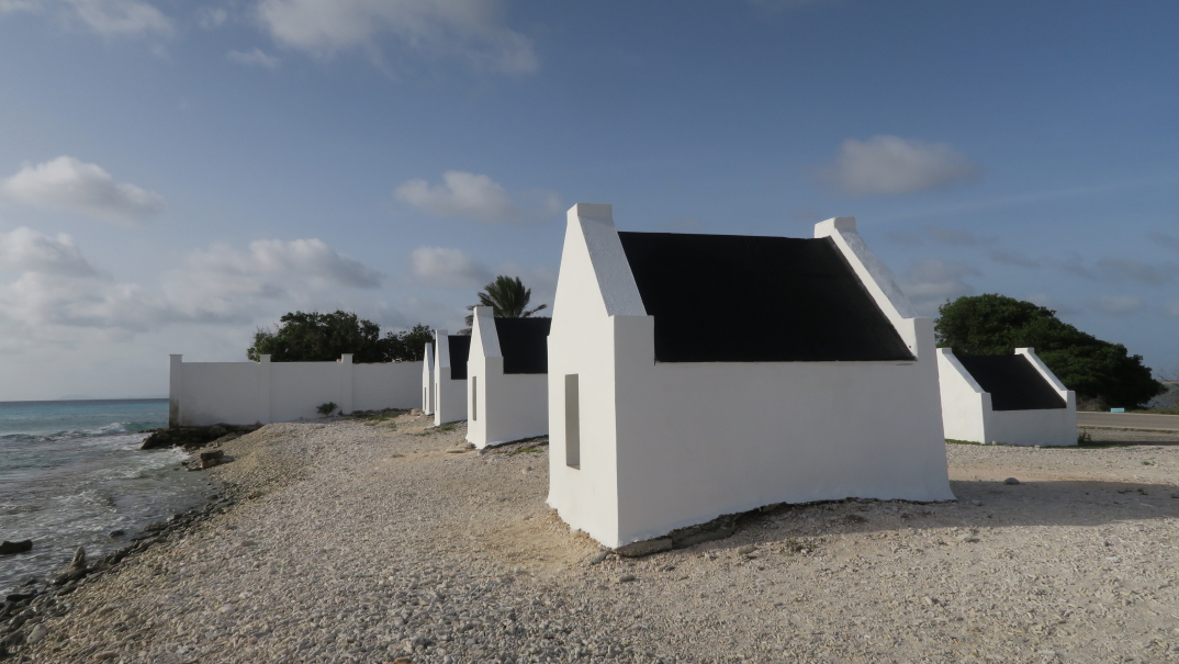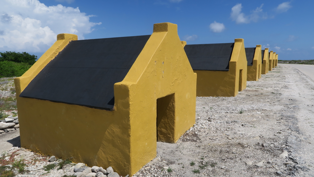 Cette activité de saline date du XVIIème siècle avec la compagnie néerlandaise des Indes Occidentales. Dès cette période, l’exploitation va se faire par le recours à des esclaves amenés des pays avoisinants. Il reste de cette période deux sites où étaient logés les esclaves, leurs logements sont à peine plus grands qu’une niche. Les sites sont magnifiques pour la photographie, juste en bord de l’eau.