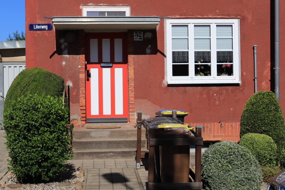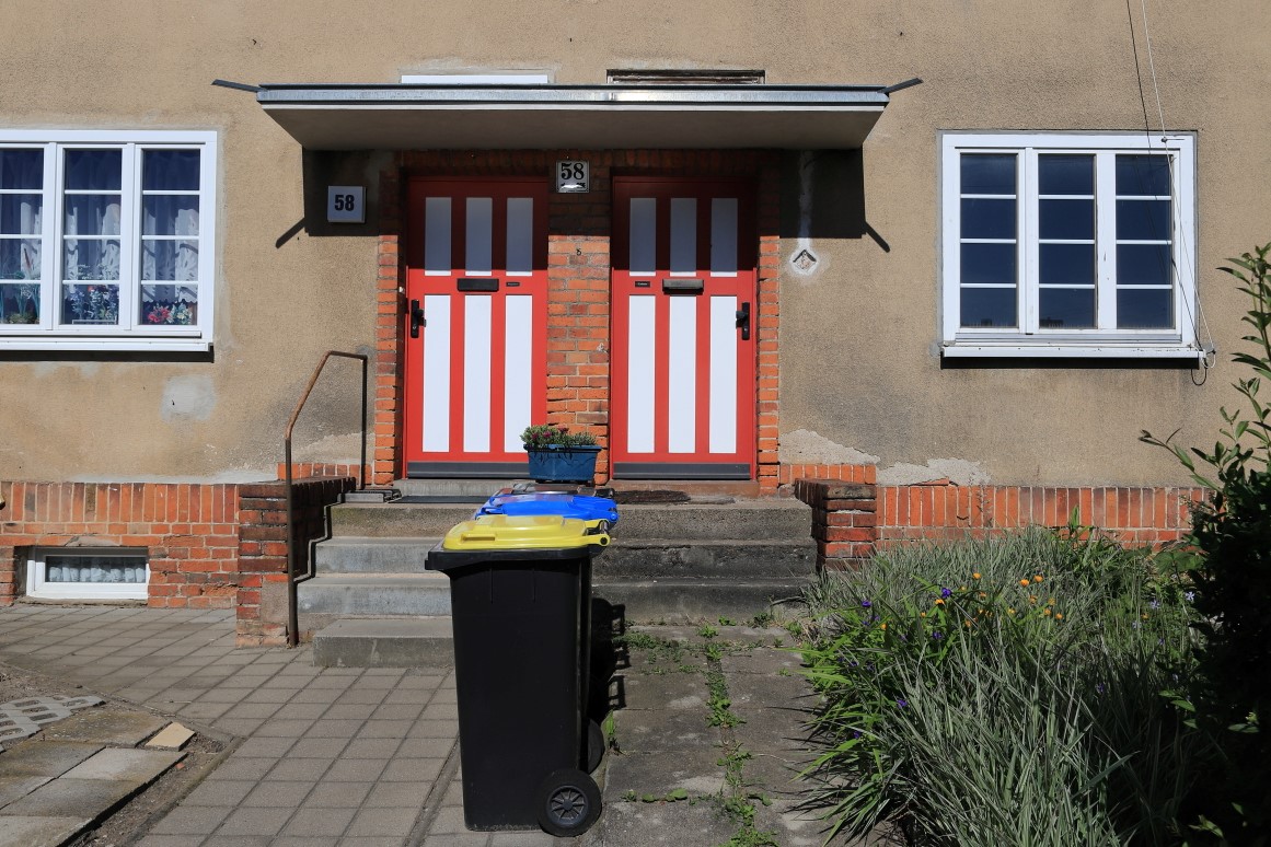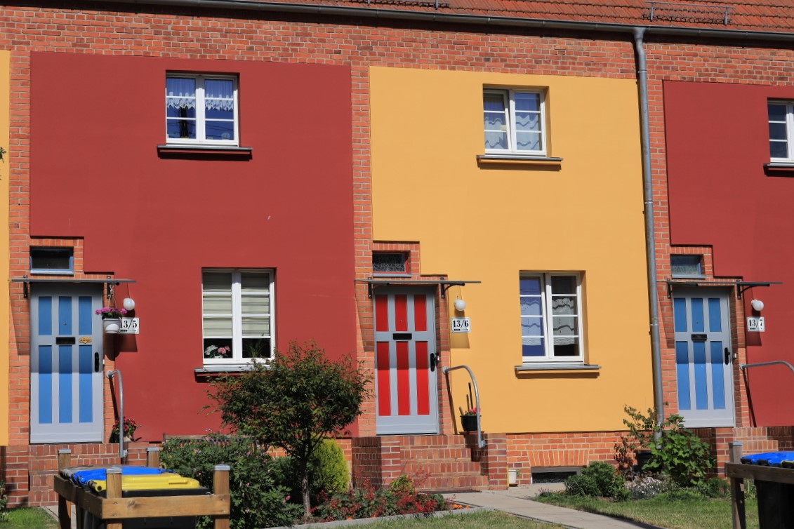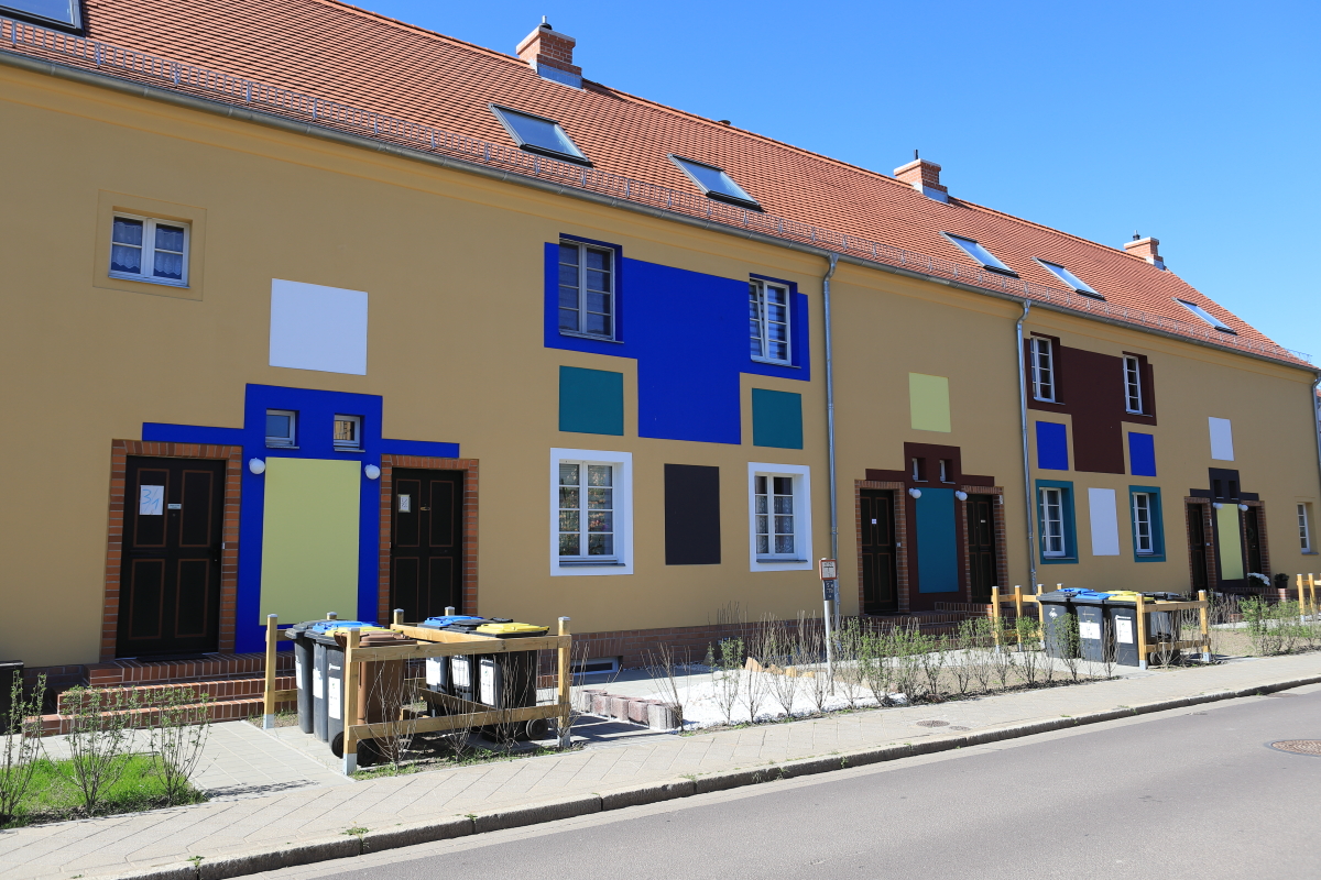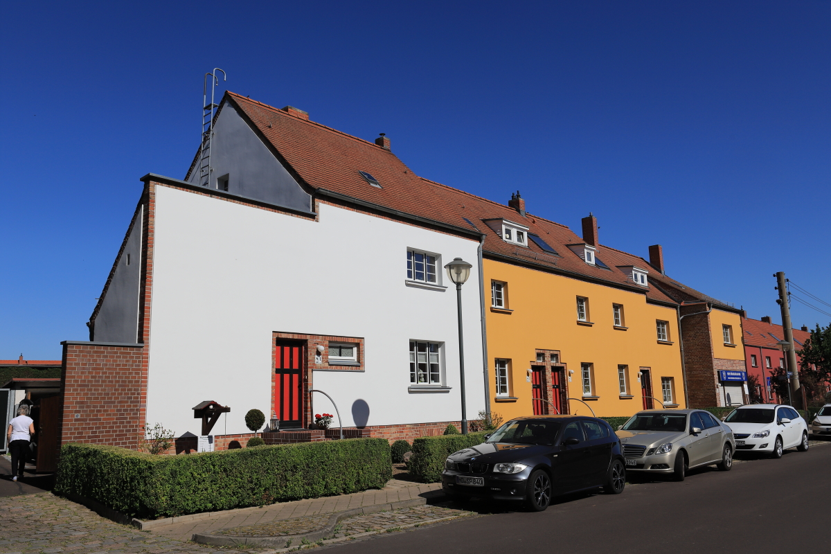 A return to colour in another district, a single street, Otto-Richter-Straße, with facades brightly painted in the 1920s (at the instigation of Bruno Taut) on buildings dating from the First World War: