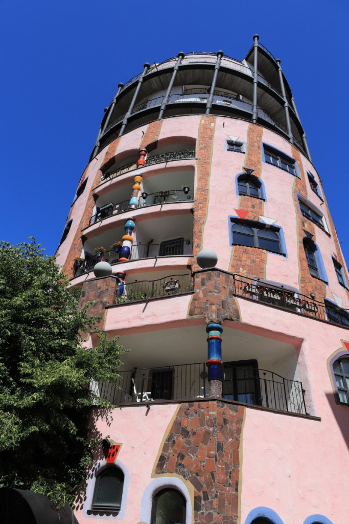 Let’s leave the 1920s for a much more recent period, with the architect Friedensreich Hundertwasser and the Grüne Zitadelle in the city centre: