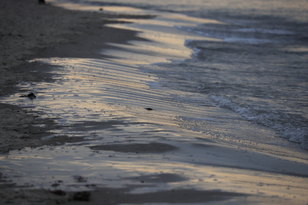 The human presence is never far away, even out of season, with jetties, dykes, and buildings to monitor swimming: